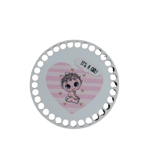 Baza koszyka - narodziny, dziewczynka -biały HDF/koło 15cm