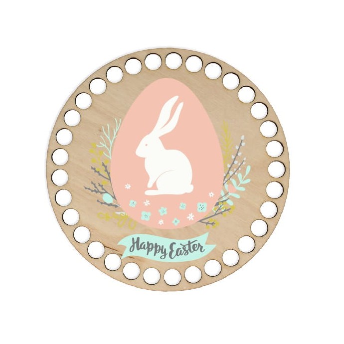 Основа за кошница - печат, кръг 15 см - Великден, зайче