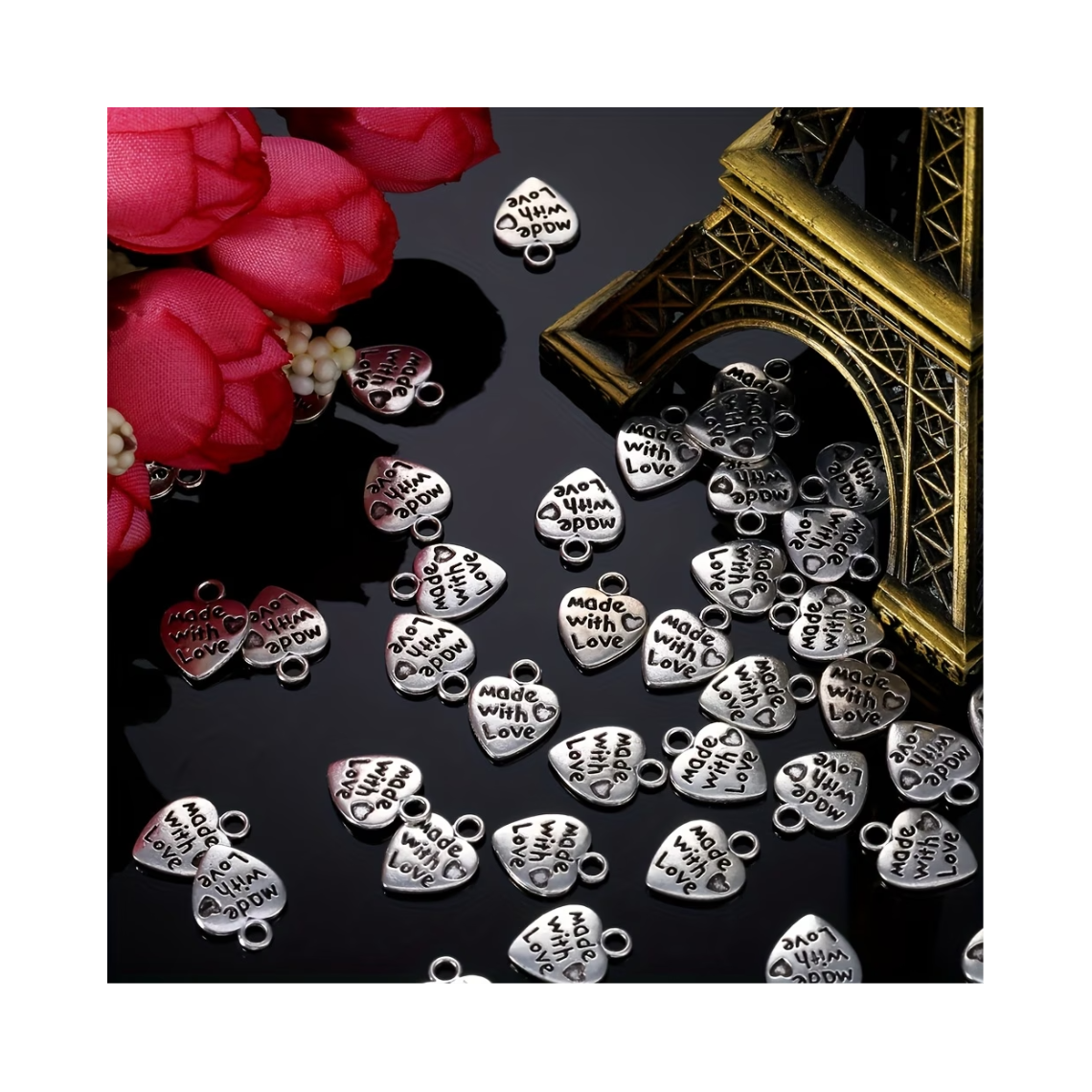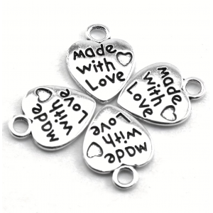 Zawieszka serce-srebrna(Made with Love) 9mm