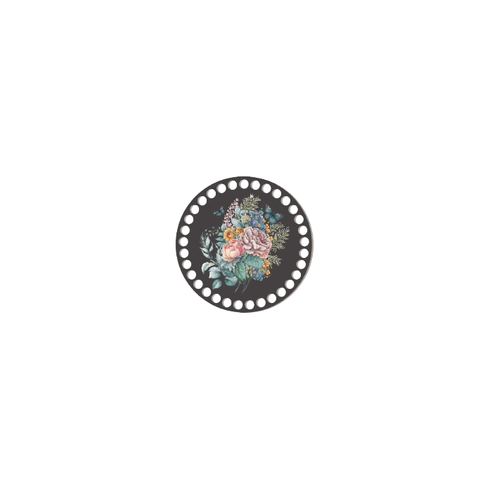 Baza koszyka - nadruk,15cm -kwiaty bukiet, czarny HDF