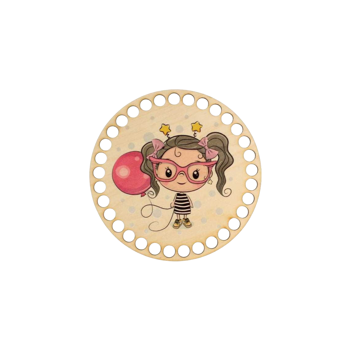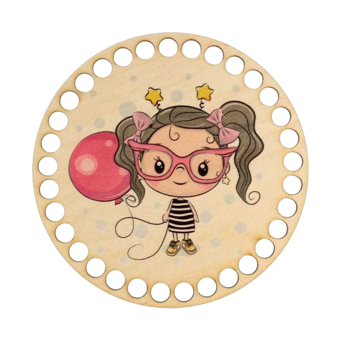 Korin pohja - painatus ympyrä 15cm - tyttö ilmapallon kanssa