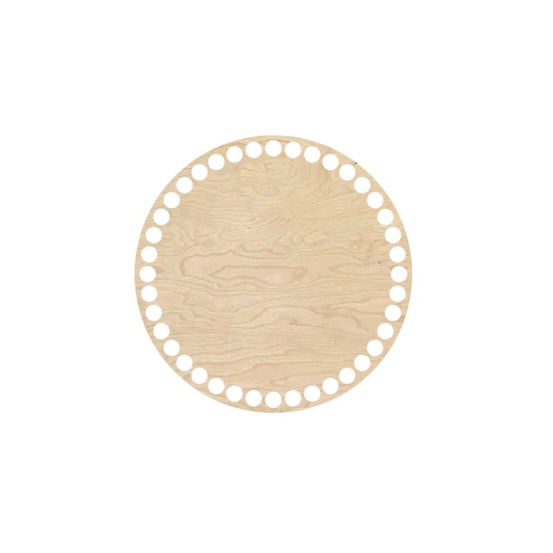 The base for crochet basket in the shape of a circle will make it easier to get a shaped pattern. Dimensions: diameter 170mm Mesh diameter: 10mm Thickness: 3mm Material: birch plywood in natural color. The price is for one piece.