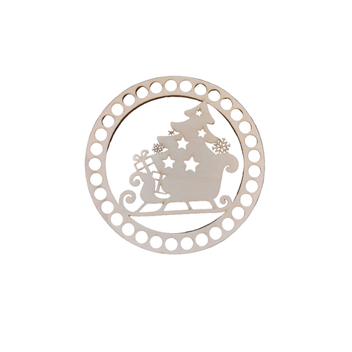 Baza pod szydełkowy koszyk w kształcie koła ułatwi uzyskanie foremnego wzoru. Dodatkowym elementem dekoracyjnym są gwiazdki wycięte w bazie.   Wymiary: średnica 150mm Średnica oczka: 10mm Grubość: 3mm Materiał: sklejka brzozowa w kolorze naturalnym.   Cena dotyczy jednej sztuki.