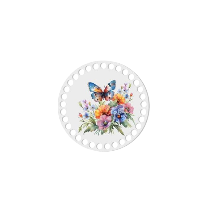 Baza koszyka-nadruk/motyl w kolorowych kwiatach/ koło HDF 15cm