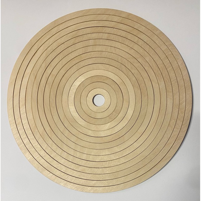 Een basis voor een haakmand in de vorm van een cirkel maakt het gemakkelijker om een gevormd patroon te maken. Afmetingen: diameter 100mm Maaswijdte: 10mm Dikte: 3mm Materiaal: berkenmultiplex in natuurlijke kleur. De prijs is voor één stuk.