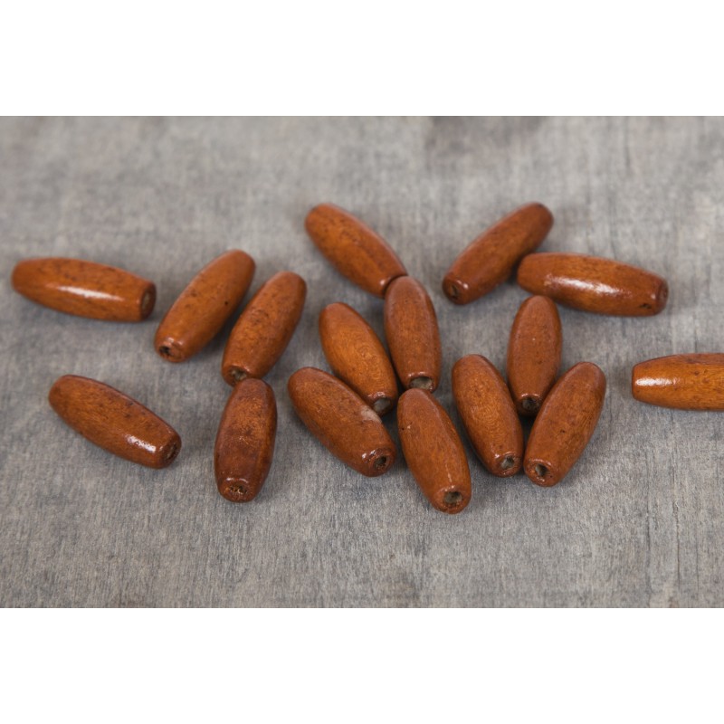 koralik drewniany do makramy Wymiary: długość koralika - 23mm Średnica otworu - 1,5mm Materiał: drewno lakierowane kolor: olcha ciemna Cena dotyczy 10sztuk
