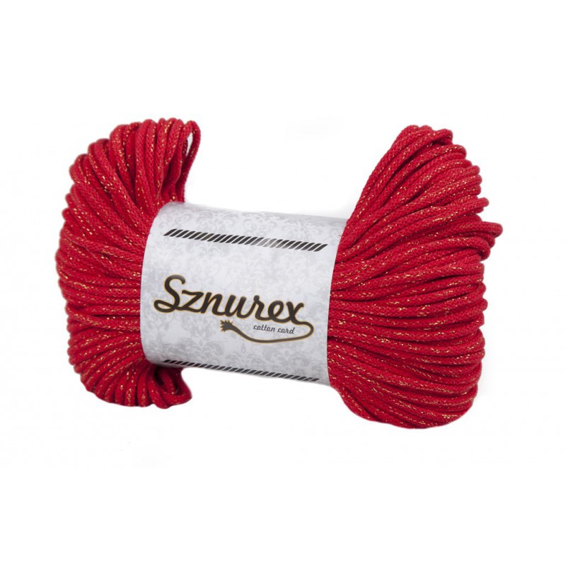 Cordão de algodão vermelho de 5 mm com fio metálico dourado /100mb
